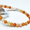 誠安天然石専門店【本店】TOP 素材で探す(ア行) 素材で探す(ア行)アゲート(メノウ・瑪瑙)ブレスレット ブレスレット アゲート ブレスレット 6mm [T85-10977] 価格: ¥500 (税込) [ポイント還元 5ポイント~] 販売期間: 数量: 個 在庫: 1個 在庫 1個 § 商品について §商品ID◆t85-10977 重 量◆物重さ:約 9.8g ◆ 総物重(梱包前) 約 9.8g (本体、箱等を含む)商品サイズ内周:約160mm(±5mm) 粒直径:約6mm(±0.5mm)【アゲート(瑪瑙)】 和名では瑪瑙(めのう)といい、アゲートの模様が馬の脳のように見える事からこのような名前が付けられました。 アゲートは赤、緑、青、黄、黒など、様々な色に着色されることで石本来のパワーがさらにアップするといわれており、着色により魅力を増す天然石はアゲートだけとも言えます。 さらにはアゲートを組み合わせるとペアになっているペアアゲート(トレジャーメノウ)は龍穴を生み出すとされ、風水的にも良いといわれています。 アゲートは古来より日本やインドやチベットなどで魔よけやお守りとされてきました。 失敗や不幸を遠ざけ金運や仕事運、成功運とも結び付けてくれる効果のほか、安産のお守りにも良いとされています。 さらに家庭円満や対人関係をスムーズにするなど、オールマイティな効果を持った石です。 ⇒ アゲートをもっと詳しく ◆ワンポイント情報 アゲートはカルセドニーの変種で、染色がされていなくともそれぞれの種類に多様な色があります。 ざっと仲間を挙げてみてもオニキス(黒)、サードニクス(橙色)、ブルーアゲート(青)、グリーンアゲート(緑)、イエローアゲート(黄)、ブルーレースアゲート(縞青)、モスアゲート(縞緑)、天眼石(縞黒)、カーネリアン(橙色)、ジャスパー(多様な縞)などとても多くの特徴と色合いを持っています。 ▼出品商品の全ては産地から直接仕入れた新品ですが、天然の物ですので不純物や内包物、色むら、天然キズ、ひびがある場合がございます。また商品はできるだけ現物に近い色で撮影していますが、光源.カメラ.モニター画面により実物と色が若干異なる場合があります。▼物重さ、商品のサイズなどは測り方によって誤差が生じる場合があります。▼誠安では環境に配慮し最低限の簡易包装で商品をお届けいたします。