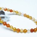 誠安天然石専門店【本店】TOP 素材で探す(ア行) 素材で探す(ア行)アゲート(メノウ・瑪瑙)ブレスレット ブレスレット アゲート ブレスレット 6mm [t85-11132] 価格: ¥500 (税込) [ポイント還元 5ポイント~] 販売期間: 数量: 個 在庫: 1個 在庫 1個 § 商品について §商品ID◆t85-11132 重 量◆物重さ:約 10.3g ◆ 総物重(梱包前) 約 10.3g (本体、箱等を含む)商品サイズ◆内周:約165mm(±5mm) 粒直径:約6mm(±0.5mm)【アゲート(瑪瑙)】 和名では瑪瑙(めのう)といい、アゲートの模様が馬の脳のように見える事からこのような名前が付けられました。 アゲートは赤、緑、青、黄、黒など、様々な色に着色されることで石本来のパワーがさらにアップするといわれており、着色により魅力を増す天然石はアゲートだけとも言えます。 さらにはアゲートを組み合わせるとペアになっているペアアゲート(トレジャーメノウ)は龍穴を生み出すとされ、風水的にも良いといわれています。 アゲートは古来より日本やインドやチベットなどで魔よけやお守りとされてきました。 失敗や不幸を遠ざけ金運や仕事運、成功運とも結び付けてくれる効果のほか、安産のお守りにも良いとされています。 さらに家庭円満や対人関係をスムーズにするなど、オールマイティな効果を持った石です。 ⇒ アゲートをもっと詳しく ◆ワンポイント情報 アゲートはカルセドニーの変種で、染色がされていなくともそれぞれの種類に多様な色があります。 ざっと仲間を挙げてみてもオニキス(黒)、サードニクス(橙色)、ブルーアゲート(青)、グリーンアゲート(緑)、イエローアゲート(黄)、ブルーレースアゲート(縞青)、モスアゲート(縞緑)、天眼石(縞黒)、カーネリアン(橙色)、ジャスパー(多様な縞)などとても多くの特徴と色合いを持っています。 ▼出品商品の全ては産地から直接仕入れた新品ですが、天然の物ですので不純物や内包物、色むら、天然キズ、ひびがある場合がございます。また商品はできるだけ現物に近い色で撮影していますが、光源.カメラ.モニター画面により実物と色が若干異なる場合があります。▼物重さ、商品のサイズなどは測り方によって誤差が生じる場合があります。▼誠安では環境に配慮し最低限の簡易包装で商品をお届けいたします。