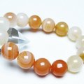 誠安天然石専門店【本店】TOP 素材で探す(ア行) 素材で探す(ア行)アゲート(メノウ・瑪瑙)ブレスレット ブレスレット ブレスレット14mm アゲート ブレスレット 14mm [T85-11205] 価格: ¥600 (税込) [ポイント還元 6ポイント~] 販売期間: 数量: 個 在庫: 在庫切れ 在庫 在庫切れ § 商品について §商品ID◆t85-11205 重 量◆物重さ:約 57.4g ◆ 総物重(梱包前) 約 57.4g (本体、箱等を含む)商品サイズ内周:約168mm(±5mm) 粒直径:約14mm(±0.5mm)【アゲート(瑪瑙)】 和名では瑪瑙(めのう)といい、アゲートの模様が馬の脳のように見える事からこのような名前が付けられました。 アゲートは赤、緑、青、黄、黒など、様々な色に着色されることで石本来のパワーがさらにアップするといわれており、着色により魅力を増す天然石はアゲートだけとも言えます。 さらにはアゲートを組み合わせるとペアになっているペアアゲート(トレジャーメノウ)は龍穴を生み出すとされ、風水的にも良いといわれています。 アゲートは古来より日本やインドやチベットなどで魔よけやお守りとされてきました。 失敗や不幸を遠ざけ金運や仕事運、成功運とも結び付けてくれる効果のほか、安産のお守りにも良いとされています。 さらに家庭円満や対人関係をスムーズにするなど、オールマイティな効果を持った石です。 ⇒ アゲートをもっと詳しく ◆ワンポイント情報 アゲートはカルセドニーの変種で、染色がされていなくともそれぞれの種類に多様な色があります。 ざっと仲間を挙げてみてもオニキス(黒)、サードニクス(橙色)、ブルーアゲート(青)、グリーンアゲート(緑)、イエローアゲート(黄)、ブルーレースアゲート(縞青)、モスアゲート(縞緑)、天眼石(縞黒)、カーネリアン(橙色)、ジャスパー(多様な縞)などとても多くの特徴と色合いを持っています。 ▼出品商品の全ては産地から直接仕入れた新品ですが、天然の物ですので不純物や内包物、色むら、天然キズ、ひびがある場合がございます。また商品はできるだけ現物に近い色で撮影していますが、光源.カメラ.モニター画面により実物と色が若干異なる場合があります。▼物重さ、商品のサイズなどは測り方によって誤差が生じる場合があります。▼誠安では環境に配慮し最低限の簡易包装で商品をお届けいたします。