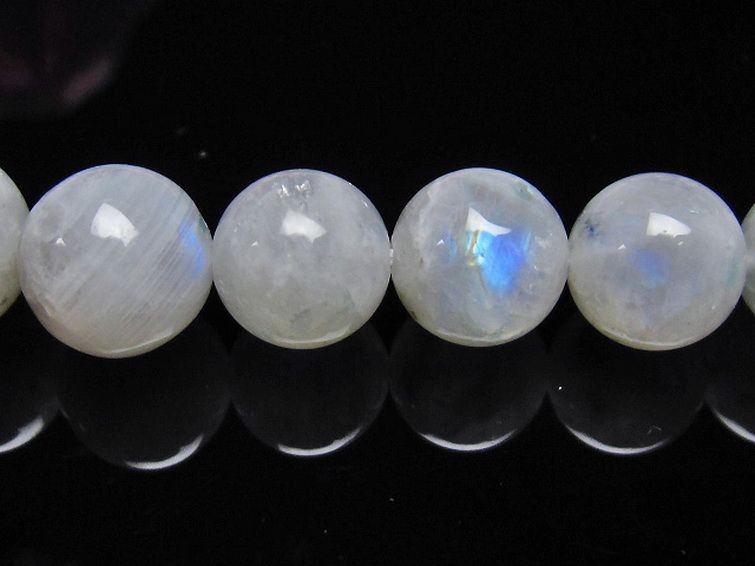 ムーンストーンは長石の一種で正長石(オーソクレース)を主としアルバイト(曹長石)成分を含んでいます。そのために美しいシラー効果が確認できます。乳白色や半透明のものが一般的ですが、他にも青やオレンジ等の様々な色が確認されています。柔らかい月の明かりのような光沢を持ち、真珠を思わせるような上品な石です。