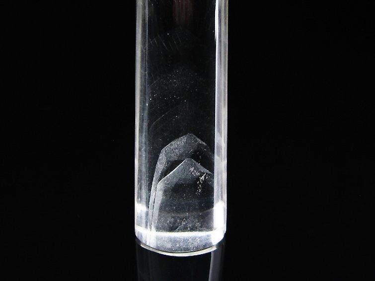 水晶の結晶が生成していく過程でいったん成長が止まり、その後再び成長を開始すると、その境目に気泡や他の物質が取り込まれ、まるで山の影を思わせる模様ができます。時にはそうした山の影が幾層にも連なっる場合があります。こうしてできた石を、ファントム水晶と呼びます。和名では、[幻影水晶][幽霊水晶]と称される場合もあります。