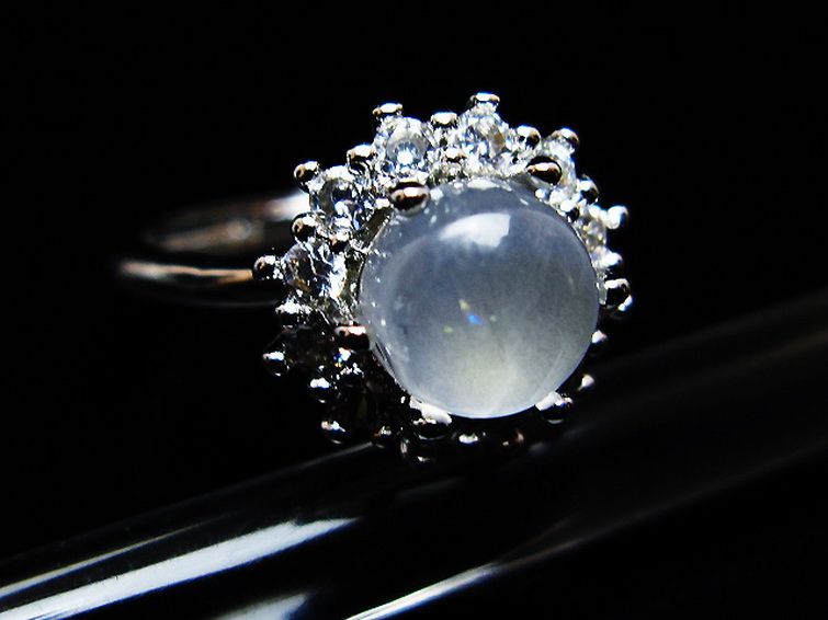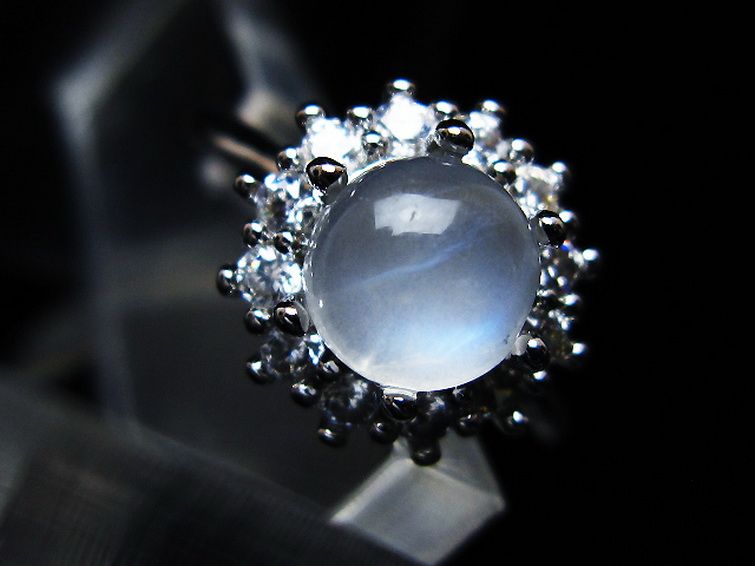 ムーンストーンは長石の一種で正長石(オーソクレース)を主としアルバイト(曹長石)成分を含んでいます。そのために美しいシラー効果が確認できます。乳白色や半透明のものが一般的ですが、他にも青やオレンジ等の様々な色が確認されています。柔らかい月の明かりのような光沢を持ち、真珠を思わせるような上品な石です。