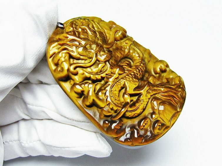 • タイガーアイ 手彫り 龍 ペンダント [T152-910]