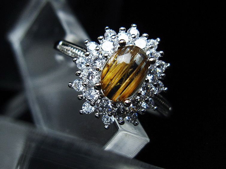 • ファイナルグレード金針ルチル水晶 指輪 (19号)[T164-7640]