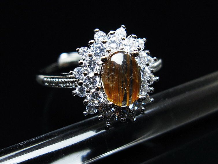 ファイナルグレード金針ルチル水晶 指輪 (19号)[T164-7640]