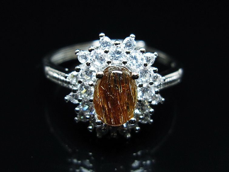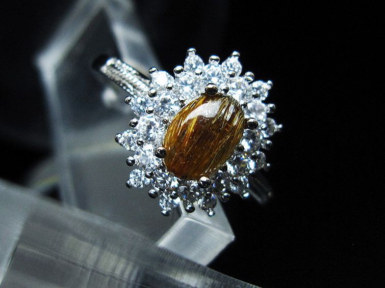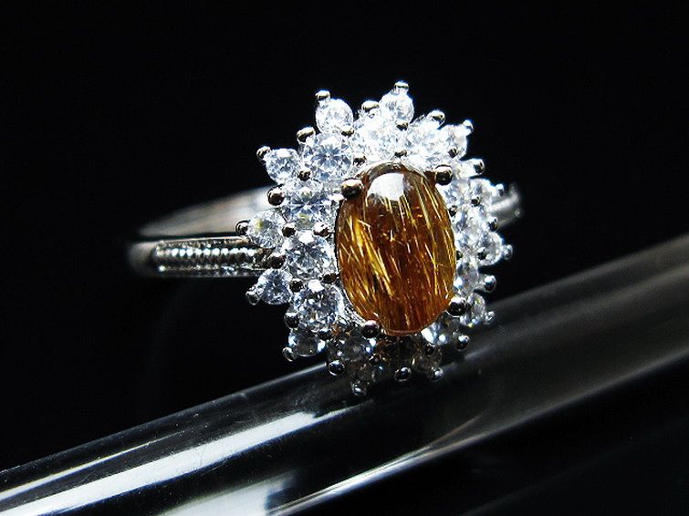 ファイナルグレード金針ルチル水晶 指輪 (17号)[T164-7646]