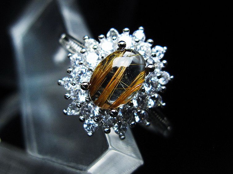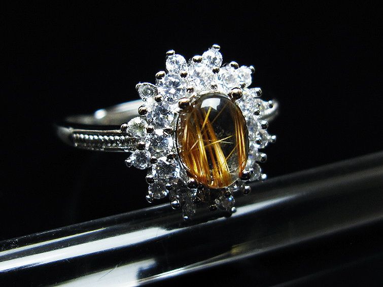 ファイナルグレード金針ルチル水晶 指輪 (17号)[T164-7654]
