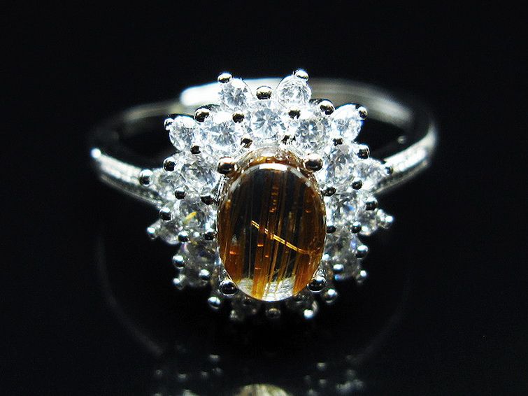 ファイナルグレード金針ルチル水晶 指輪 (17号)[T164-7658]