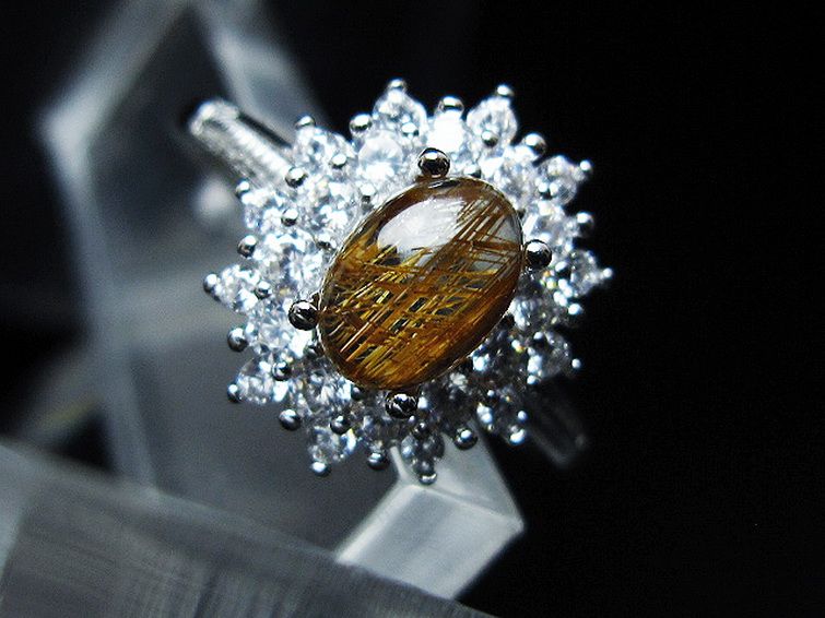 ファイナルグレード金針ルチル水晶 指輪 (17号)[T164-7674]