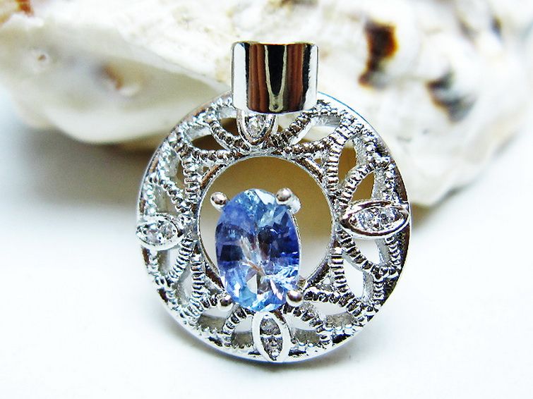 タンザナイトはゾイサイトという鉱物で、美しい発色はバナジウムによるものです。そこに微量の酸化クロムが含まれると更に濃い青色となり、違ったカラーリングで見る者を楽しませてくれます。また多色性を持つため、自然光の下では透明感のある青色、ライトの下では紫色と、見る条件によって違った色を見せてくれるのが特徴です。