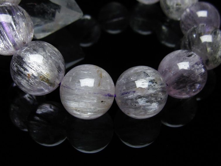 【クンツァイト(スポデューメン)】 クンツァイトはほんのり紫がかった上品なライラックピンクの石です。鉱物的にはスポデューメンと呼ばれます。緑色系のものはヒデナイトと呼ばれます。スポデューメンにはこの他にも、無色、グレー、黄色など様々な色があります。 非常に上品な色合いをしていますので、どんなシーンでも選ばずに落ち着いた美を醸し出してくれます。 クンツァイトは純粋な無償の愛を象徴します。見返りを求めず寛容な心を養い人への批判的な感情を抑え、思いやり溢れる豊かなコミュニケーションを取れるように導いてくれるそうです。その為イライラしがちだったり、人に対して神経質な部分がある場合には持っていると重宝する石といえるでしょう。 この石の柔らかい色のように持ち主を色々な意味で柔らかくしてくれるでしょう。
