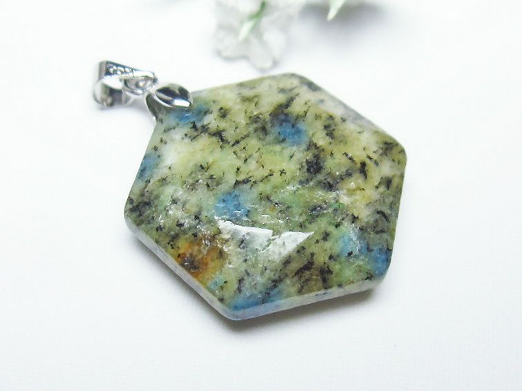 K2ストーン アズライト イン グラナイト  大衛星 ペンダント 25mm [T192-647]