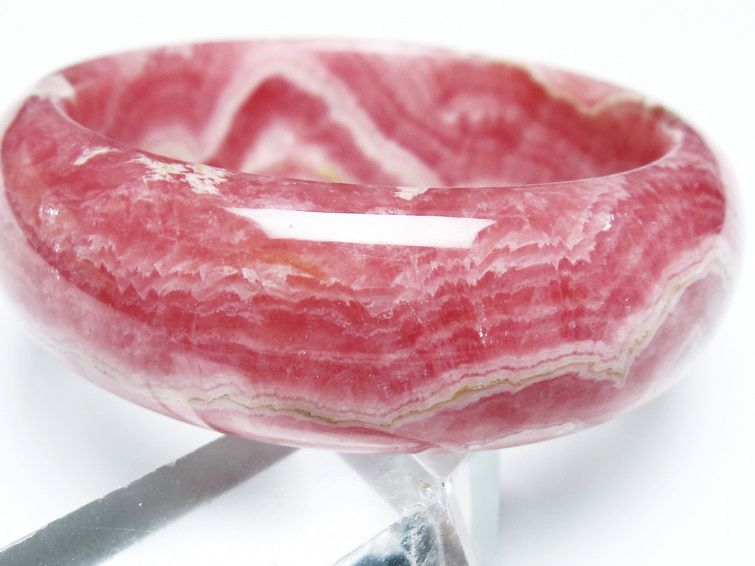インカローズは硬度が3.5~4と低いために傷つきやすかったり、日光に長時間当たることで褪色しやすいなど、繊細な石でもあります。取り扱いや保管には十分に注意してください。