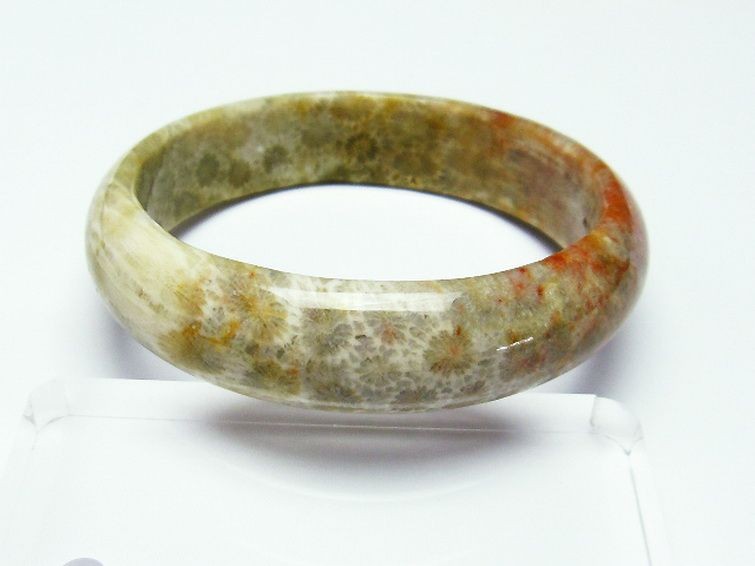 フォッシルコーラル  バングル   化石珊瑚60mm [T23-2408]