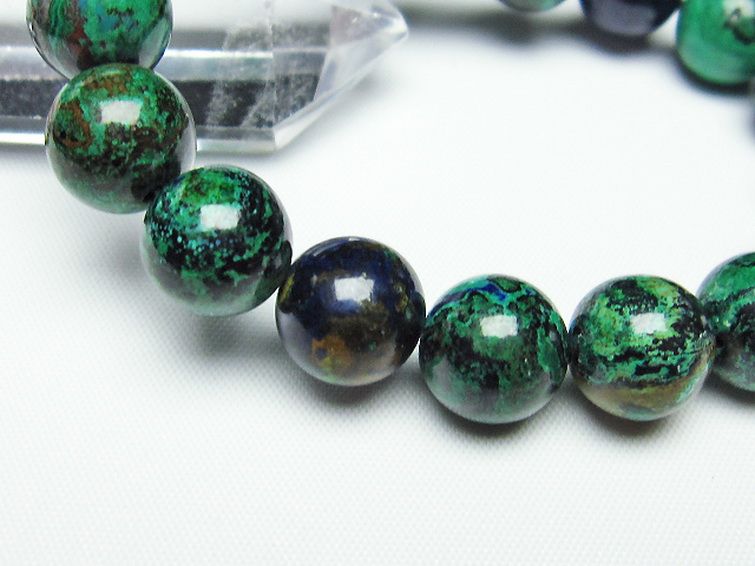 そのため本来ブルーだった筈のアズライトが、ブルー(アズライト)とグリーン(マラカイト)の混ざり合ったアズロマラカイトになったり、グリーンのマラカイトへ変化してしまうのです。