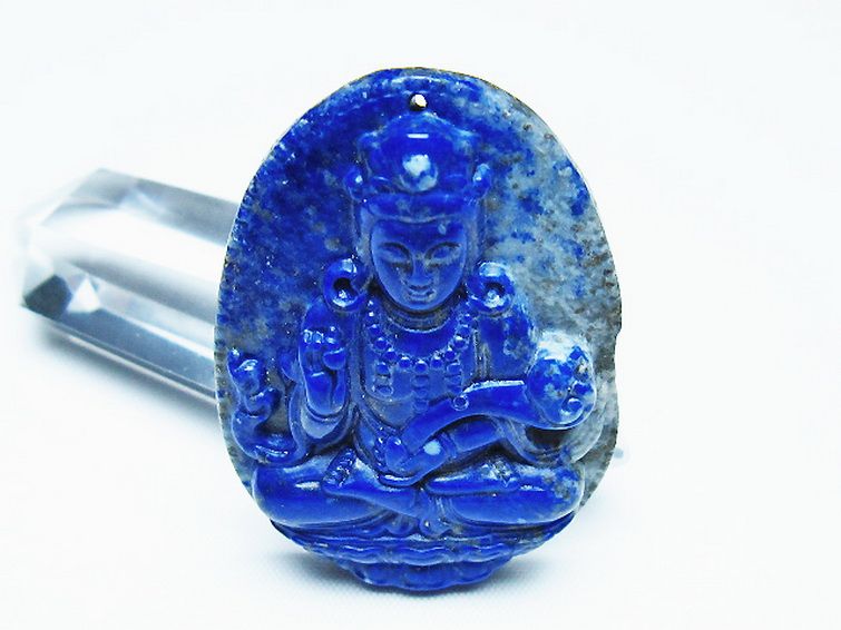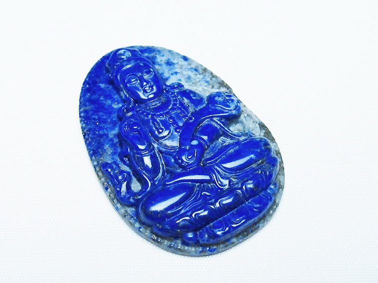 • ラピスラズリ 手彫り 観音 置物[T25-40745]