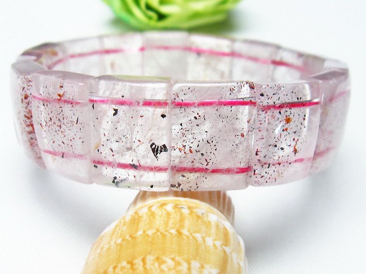 【スーパーセブン】 スーパーセブンは、7種類の鉱物が一つの石に内包されているという特殊な石です。 種類は、水晶、アメジスト、カコクセナイト、レピドクロサイト、ゲーサイト、ルチルクォーツ、スモーキークォーツの七つ。 スーパーセブンは内包される鉱物の割合により表情が大きく異なります。全ての鉱物を肉眼で確認できるものは非常に稀ですが、スーパーセブンの原石からカットされたものでも同等の波動をまとっているので全ての鉱物が揃わずともスーパーセブンといわれます。 内包される7種類の鉱物全てのパワーを備えていることからスーパーセブンの持つエネルギーは非常に強く、潜在能力を開花させ総合的な運気を好転させる力があり、また鉱物同士でパワーを補い合い高めあうのでエネルギーチャージの必要も無いとまでいわれています。
