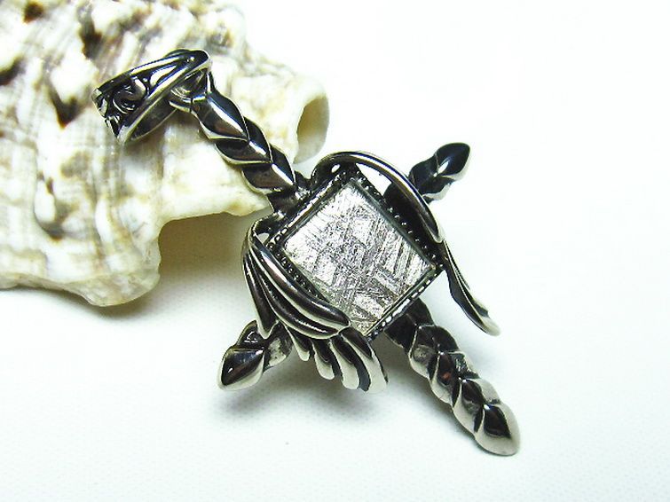 ギベオン メテオライト隕石 十字架 ロザリオ ペンダント [T309-1790]
