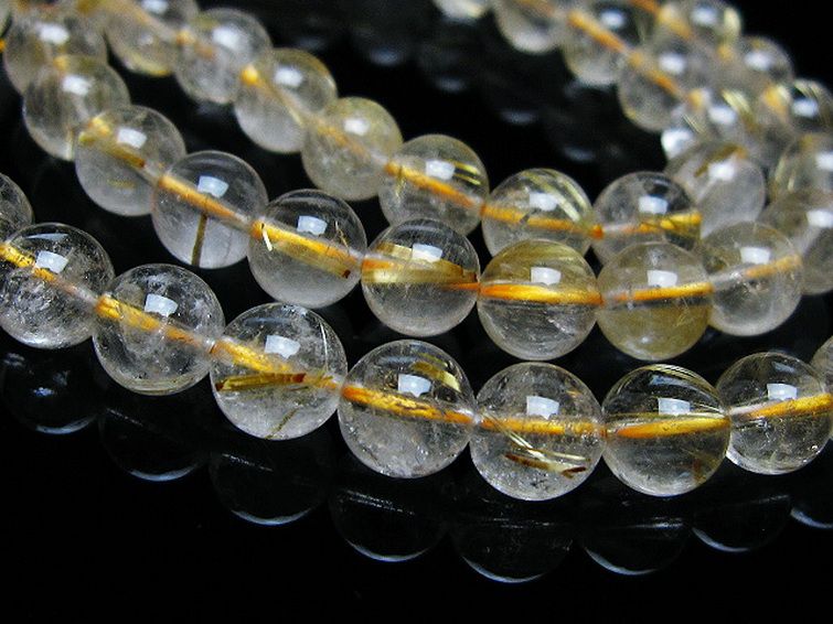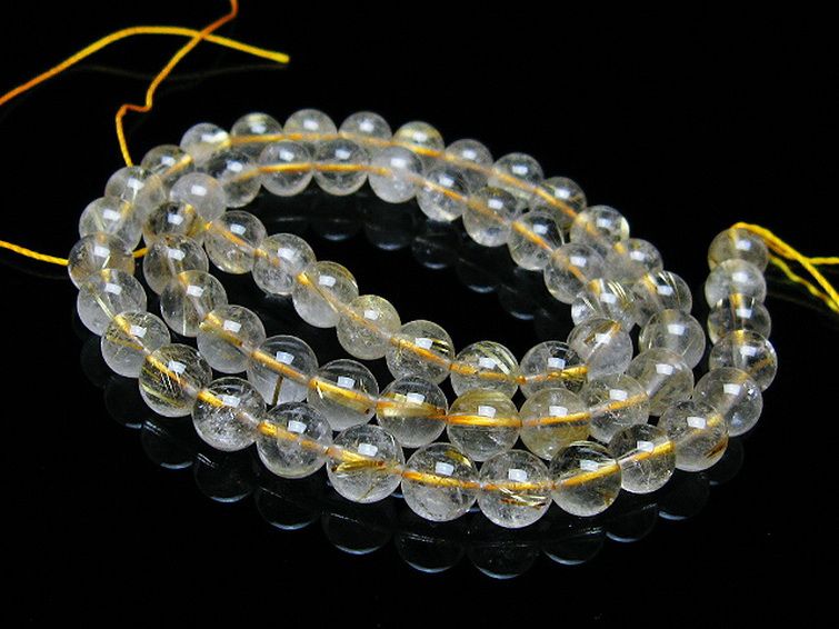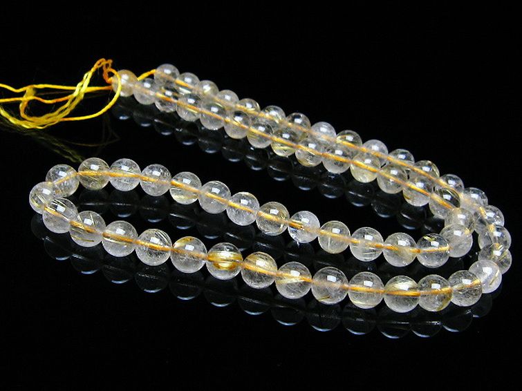 • ゴールドタイチンルチル 一連 7mm ビーズ [t320-3774]