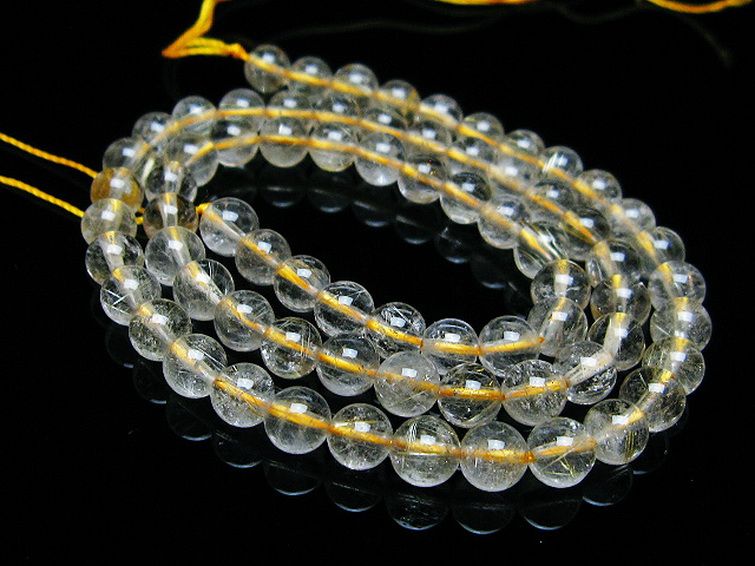 • ゴールドタイチンルチル 一連 6mm ビーズ [t320-3796]