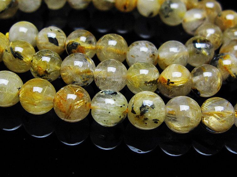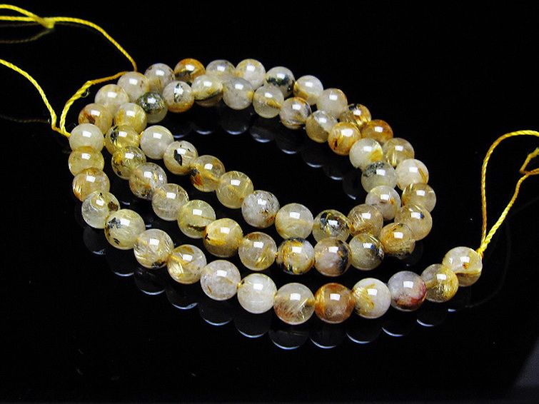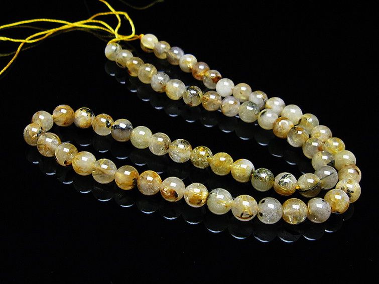 • ゴールドタイチンルチル 一連 7mm ビーズ [t320-3855]