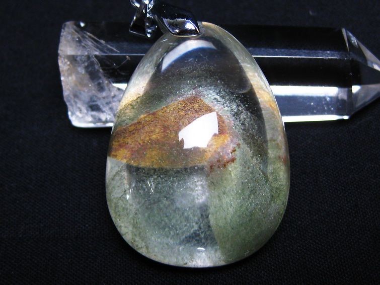 水晶の結晶が生成していく過程でいったん成長が止まり、その後再び成長を開始すると、その境目に気泡や他の物質が取り込まれ、まるで山の影を思わせる模様ができます。時にはそうした山の影が幾層にも連なっる場合があります。こうしてできた石を、ファントム水晶と呼びます。和名では、[幻影水晶][幽霊水晶]と称される場合もあります。