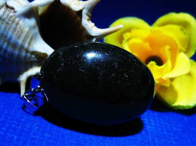 スターダイオプサイドは別名「ブラックスター」とも呼ばれ、不透明な黒地に光が当たることで十字のような四条のスター効果が見られます。