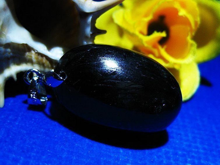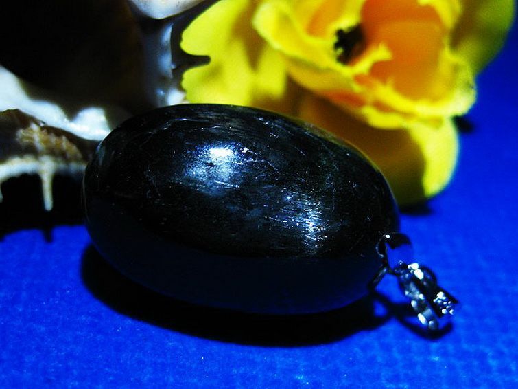 ダイオプサイトは光を当てるとスター効果により十字の星が現れるスターダイオプサイド、通称[ブラックスター]と呼ばれています。