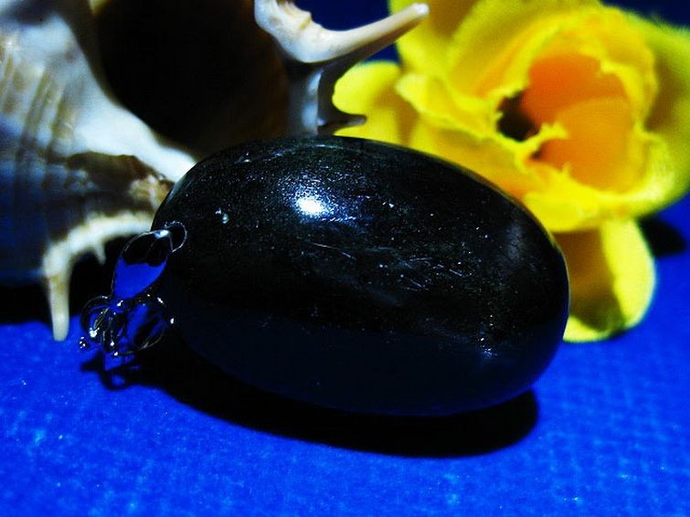 ダイオプサイトは光を当てるとスター効果により十字の星が現れるスターダイオプサイド、通称[ブラックスター]と呼ばれています。