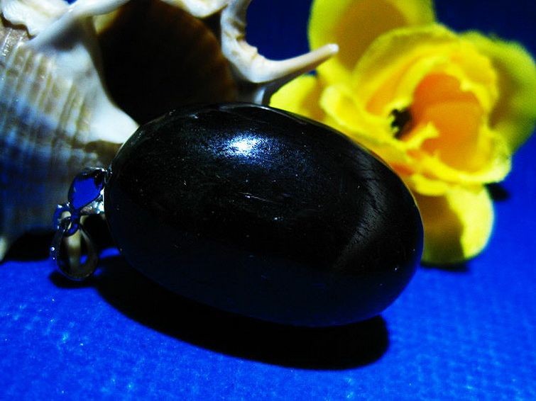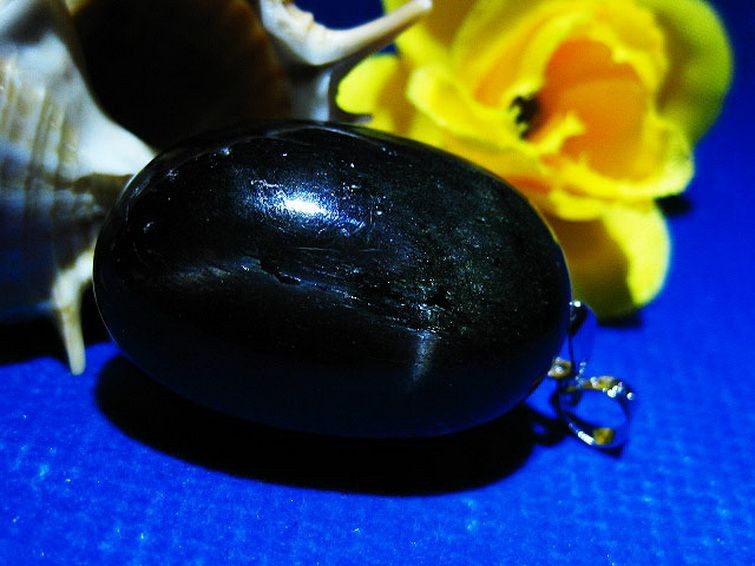 スターダイオプサイドは別名「ブラックスター」とも呼ばれ、不透明な黒地に光が当たることで十字のような四条のスター効果が見られます。