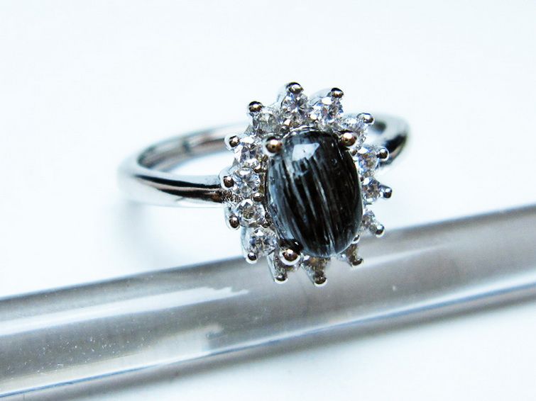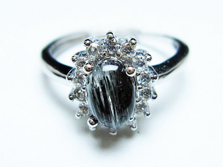 ブラックルチルクォーツ 指輪 (15号)[T343-1317]