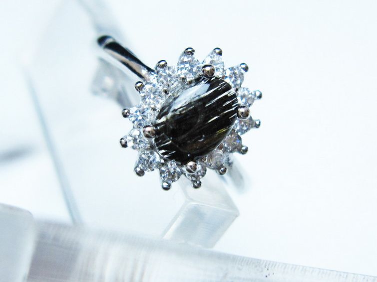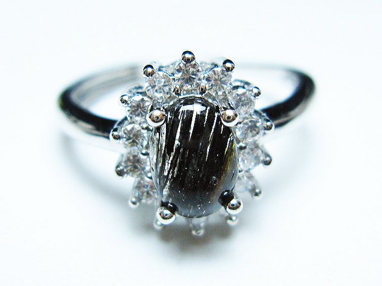 ブラックルチルクォーツ 指輪 (15号)[T343-1329]