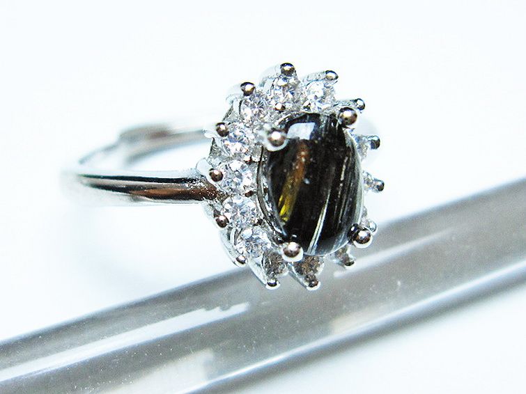 • ブラックルチルクォーツ 指輪 (15号)[T343-1329]