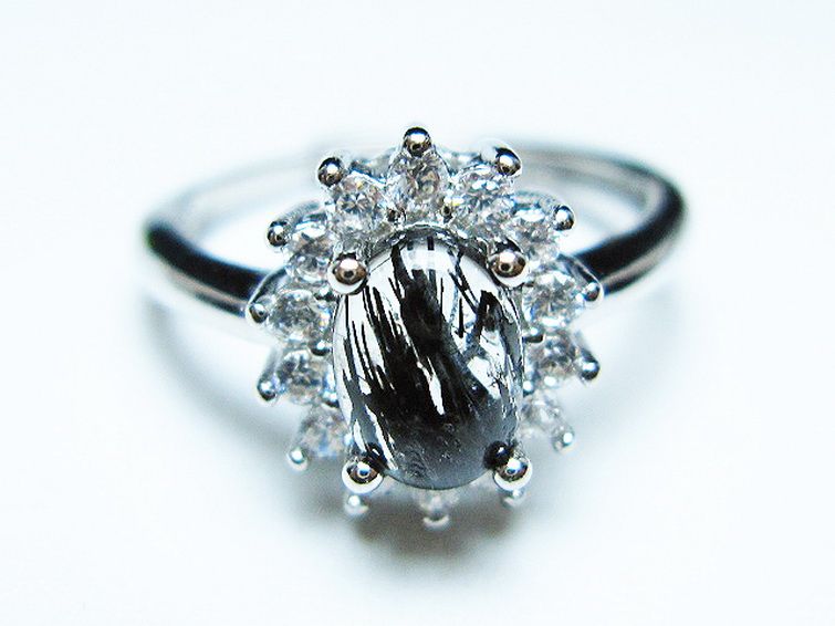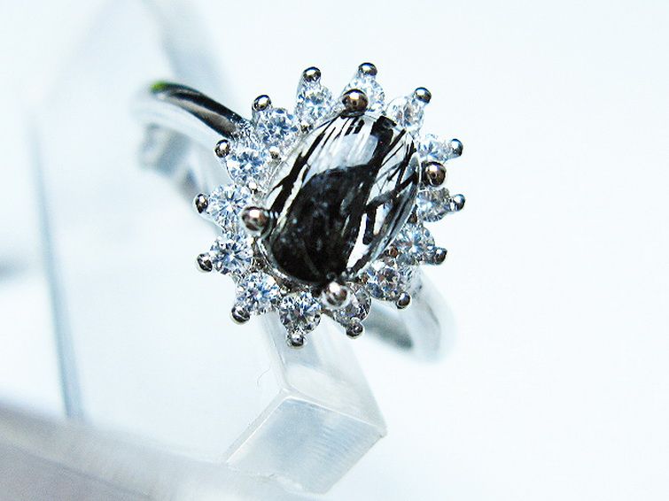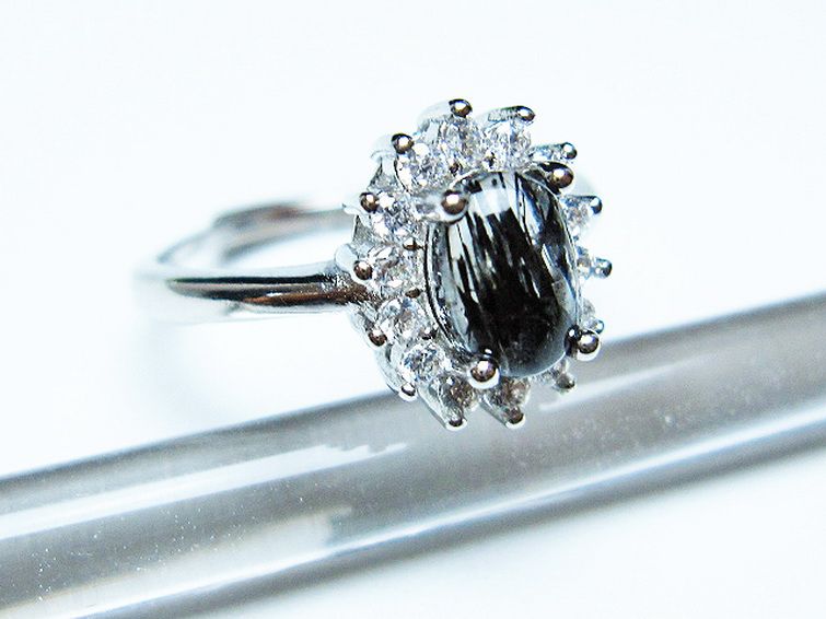 ブラックルチルクォーツ 指輪 (14号)[T343-1338]