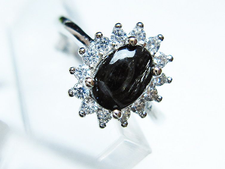• ブラックルチルクォーツ 指輪 (14号)[T343-1364]