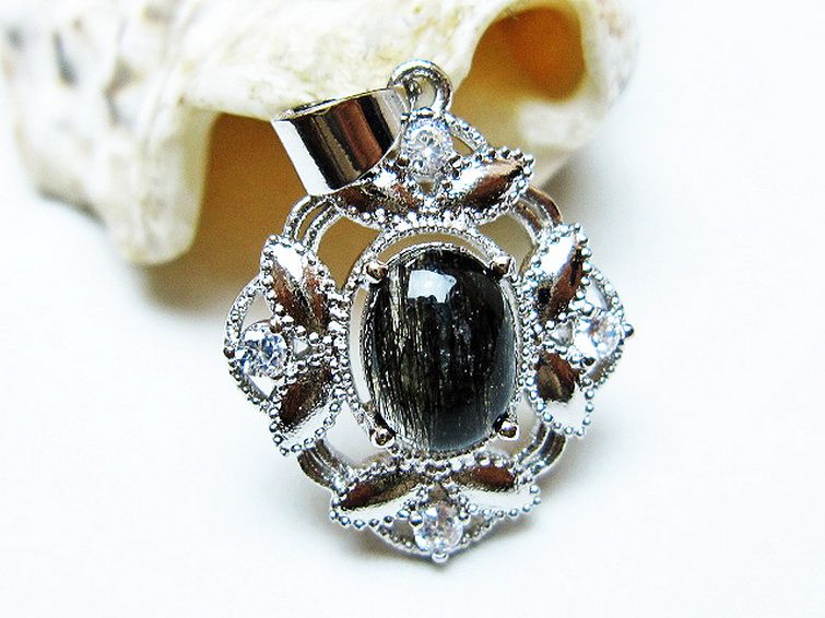 • ブラックルチルクォーツ ペンダント [T343-1433]