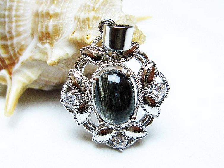 ブラックルチルクォーツ ペンダント [T343-1433]