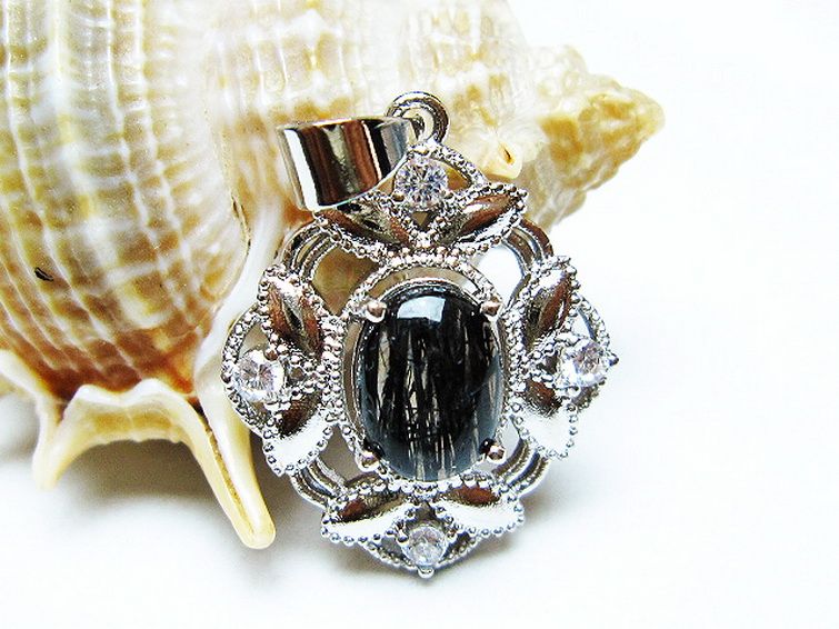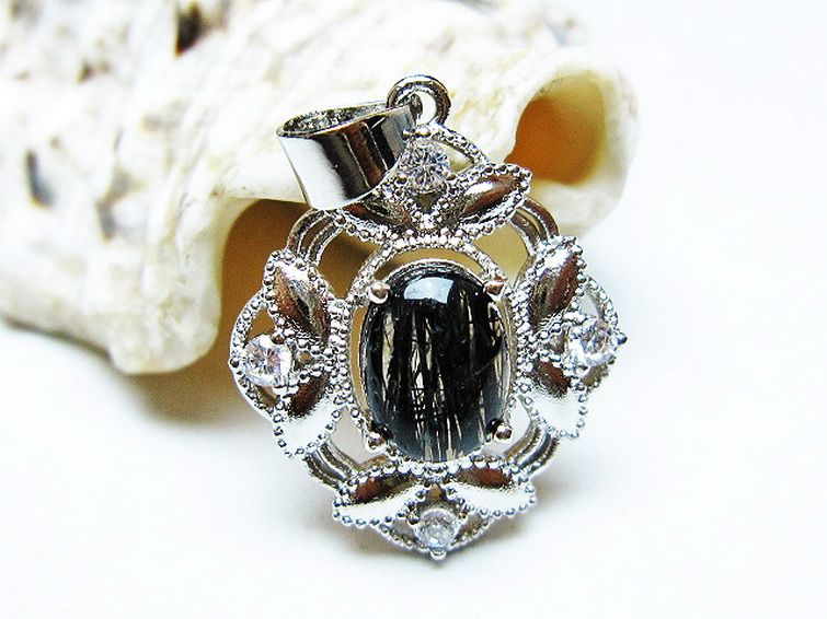 ブラックルチルクォーツ ペンダント [T343-1436]