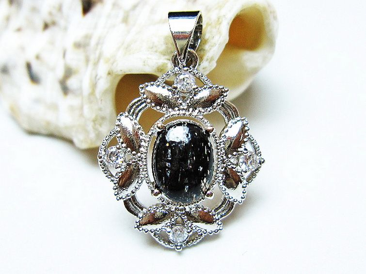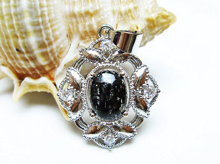 ブラックルチルクォーツ ペンダント [T343-1444]