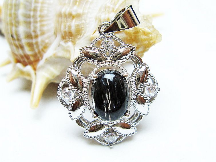 • ブラックルチルクォーツ ペンダント [T343-1448]