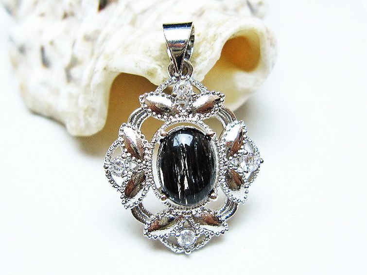 ブラックルチルクォーツ ペンダント [T343-1448]