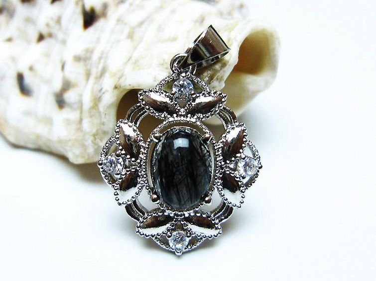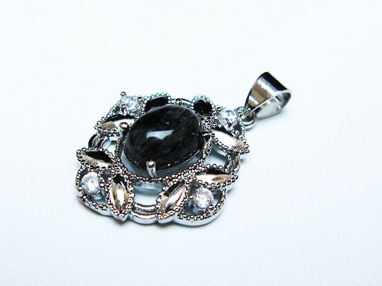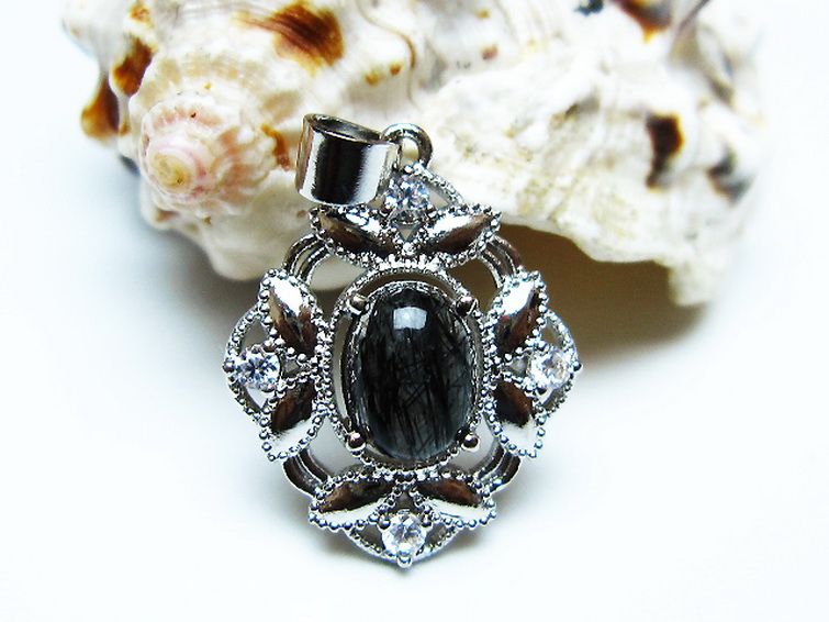 ブラックルチルクォーツ ペンダント [T343-1570]