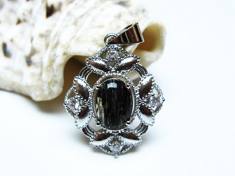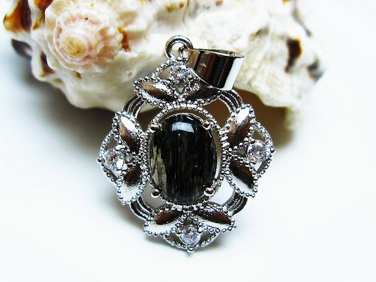 ブラックルチルクォーツ ペンダント [T343-1580]