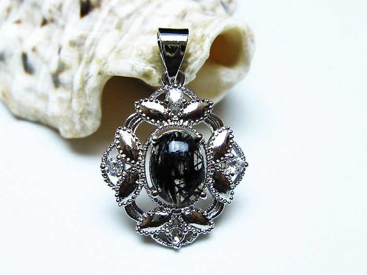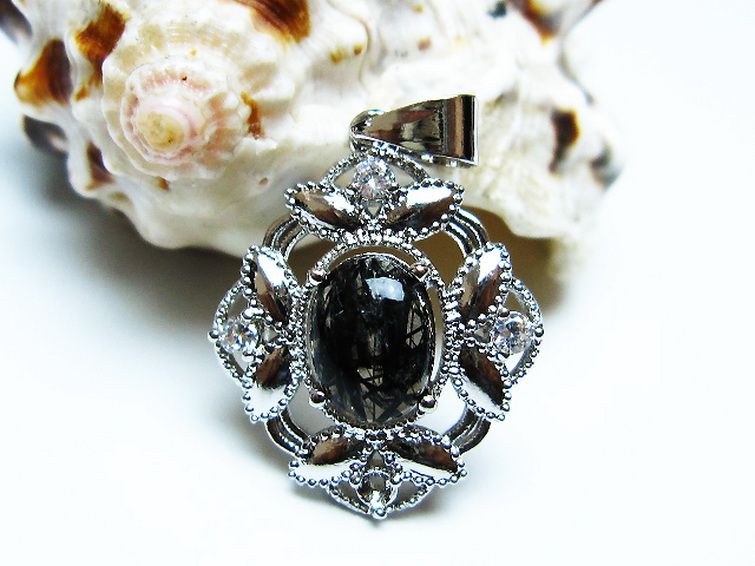 ブラックルチルクォーツ ペンダント [T343-1595]