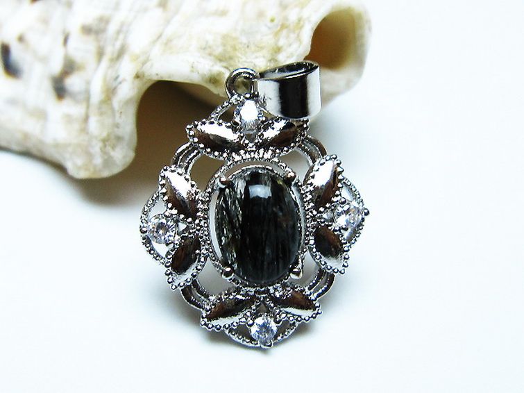 ブラックルチルクォーツ ペンダント [T343-1599]