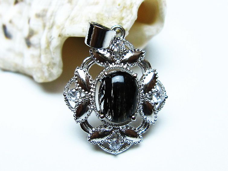 ブラックルチルクォーツ ペンダント [T343-1614]
