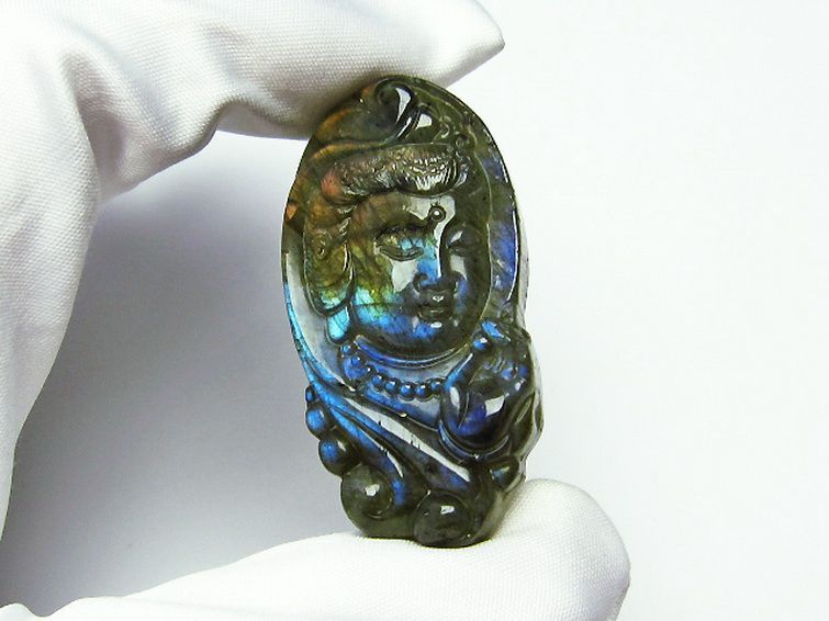 • ラブラドライト 観音様 タンブル[T412-1840]