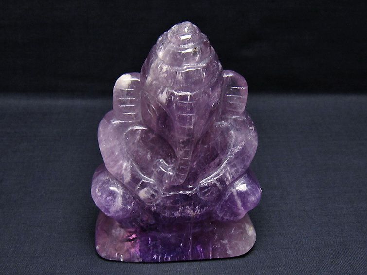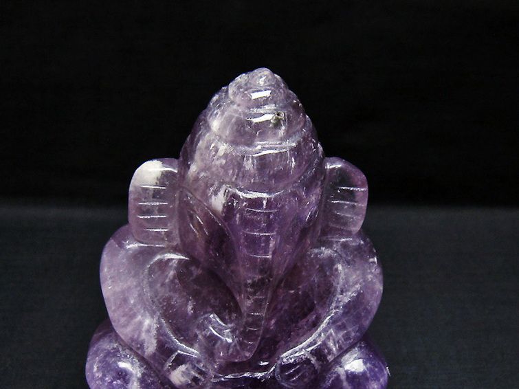 • アメジスト ガネーシャ 彫刻品 置物[T42-657]