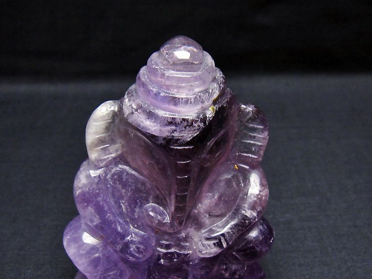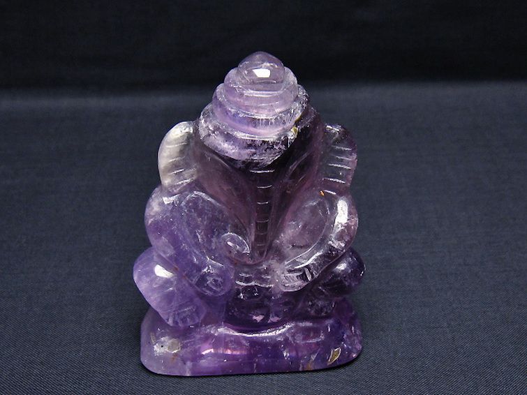 • アメジスト ガネーシャ 彫刻品 置物[T42-680]