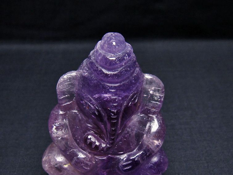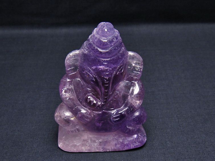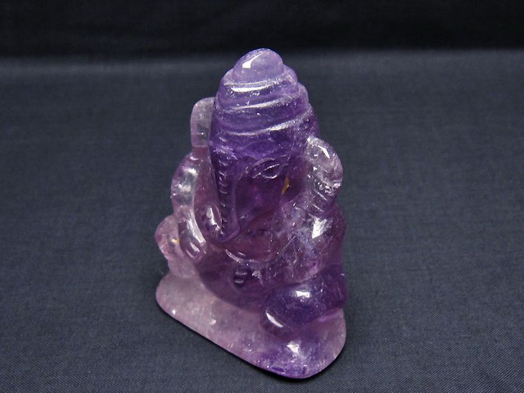 • アメジスト ガネーシャ 彫刻品 置物[T42-687]